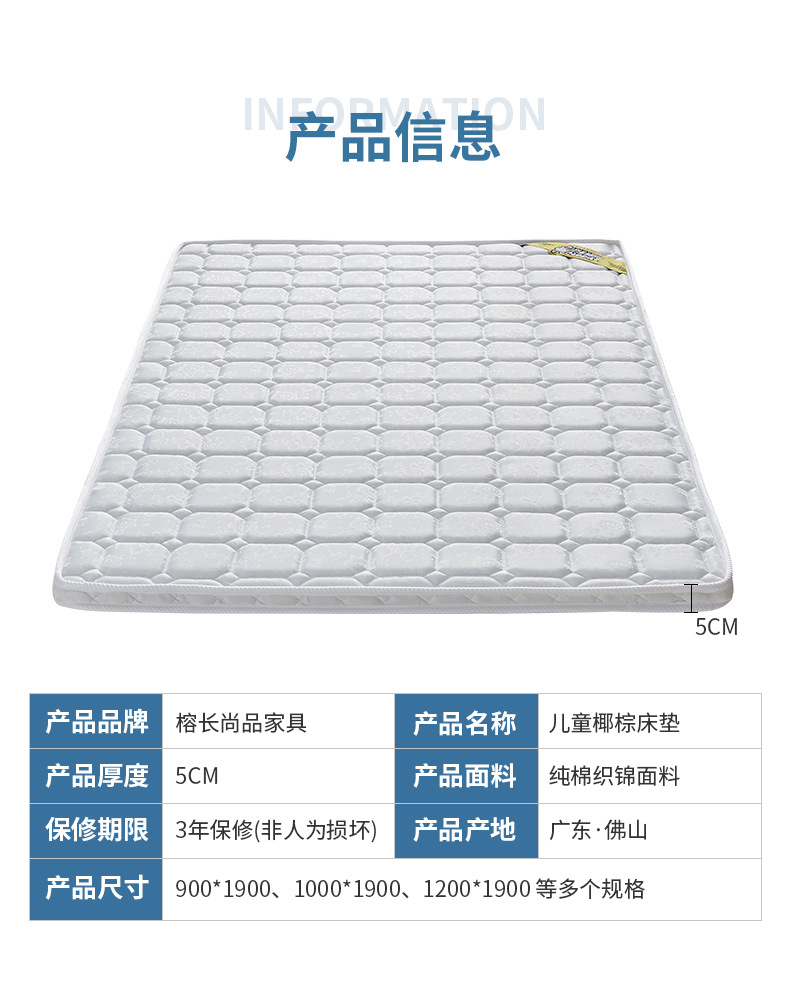 概述:环保儿童床垫薄棕垫椰棕硬薄棕榈席床垫1.2米1.5米儿童上下床床垫;货号:床垫:床垫厚度:50mm;材质:椰棕......