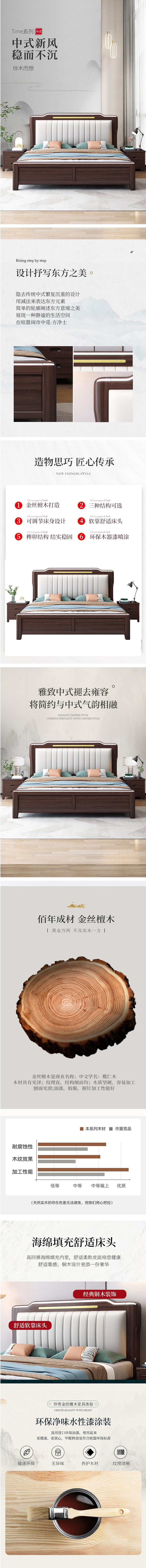 新中式家具 金丝檀木实木床 双人床主卧 1170元起