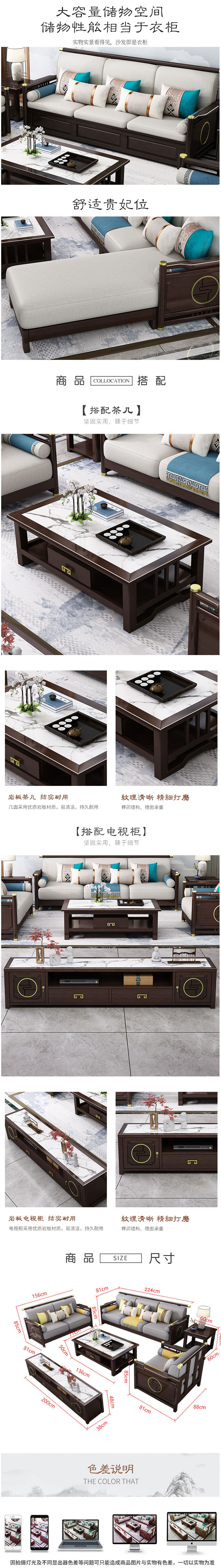 新中式家具 实木沙发组合客厅 轻奢布艺禅意别墅家具 3107元起
