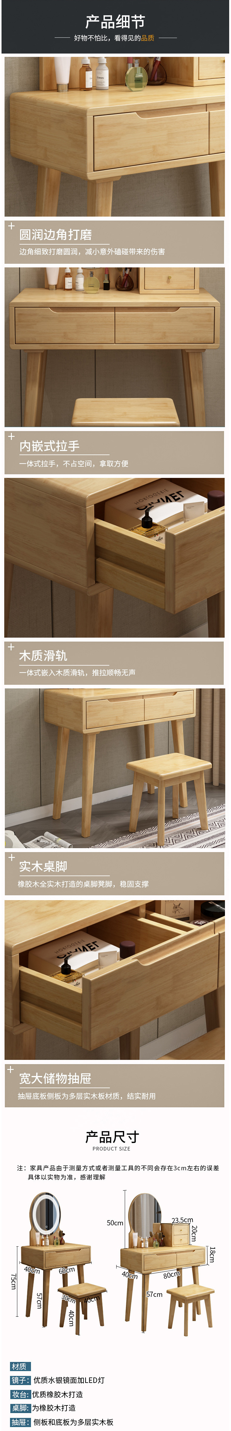 北欧家具 实木带夜灯梳妆台 现代简约小户型化妆桌 1014元