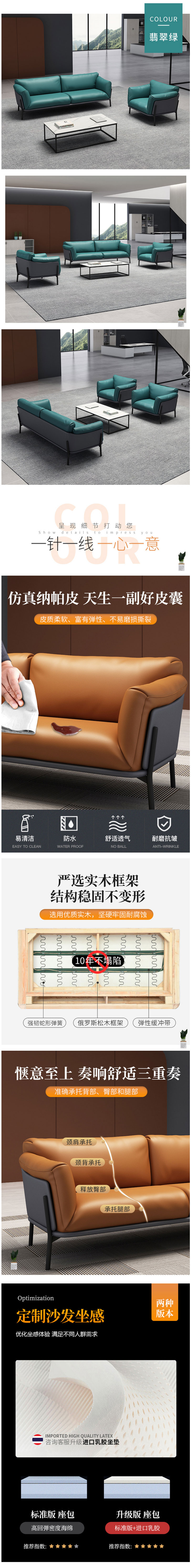 概述:现代商务皮艺沙发组合办公室家用接待单人双人位意式极简办公沙发;材质:皮制;风格:现代简约;样式:组合;型号:sf6;框架:木骨架;内部填充物:高弹泡沫海绵;颜色:橙,绿......