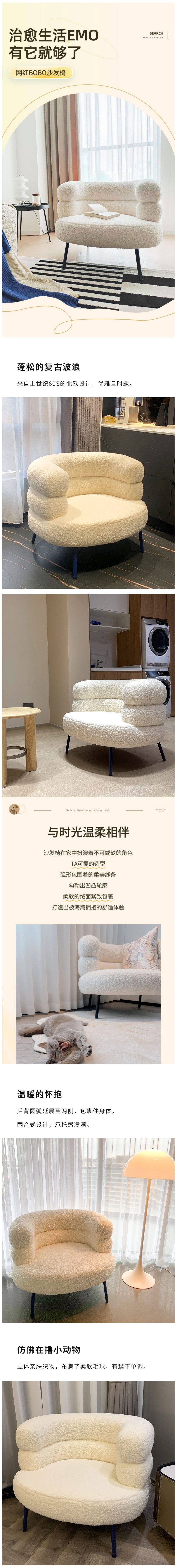 概述:羊羔绒休闲躺椅 卧室阳台小户型休闲躺椅 简约化妆椅现代白色单人沙发;货号:MS265;材质:实木;风格:北欧;家具结构:框架结构;......
